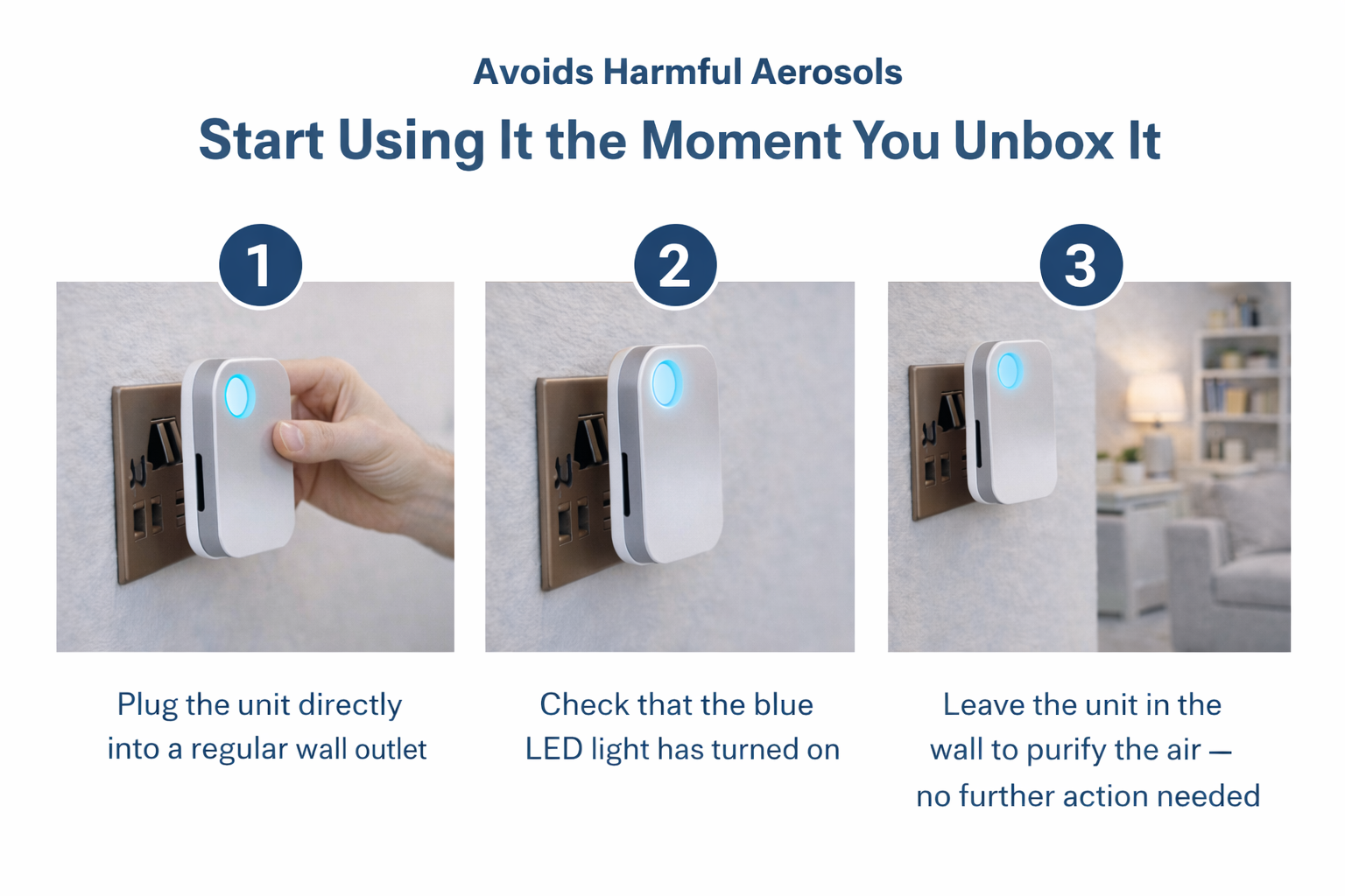 Step 3 – Leave the unit in the wall to purify the air – no further action needed
